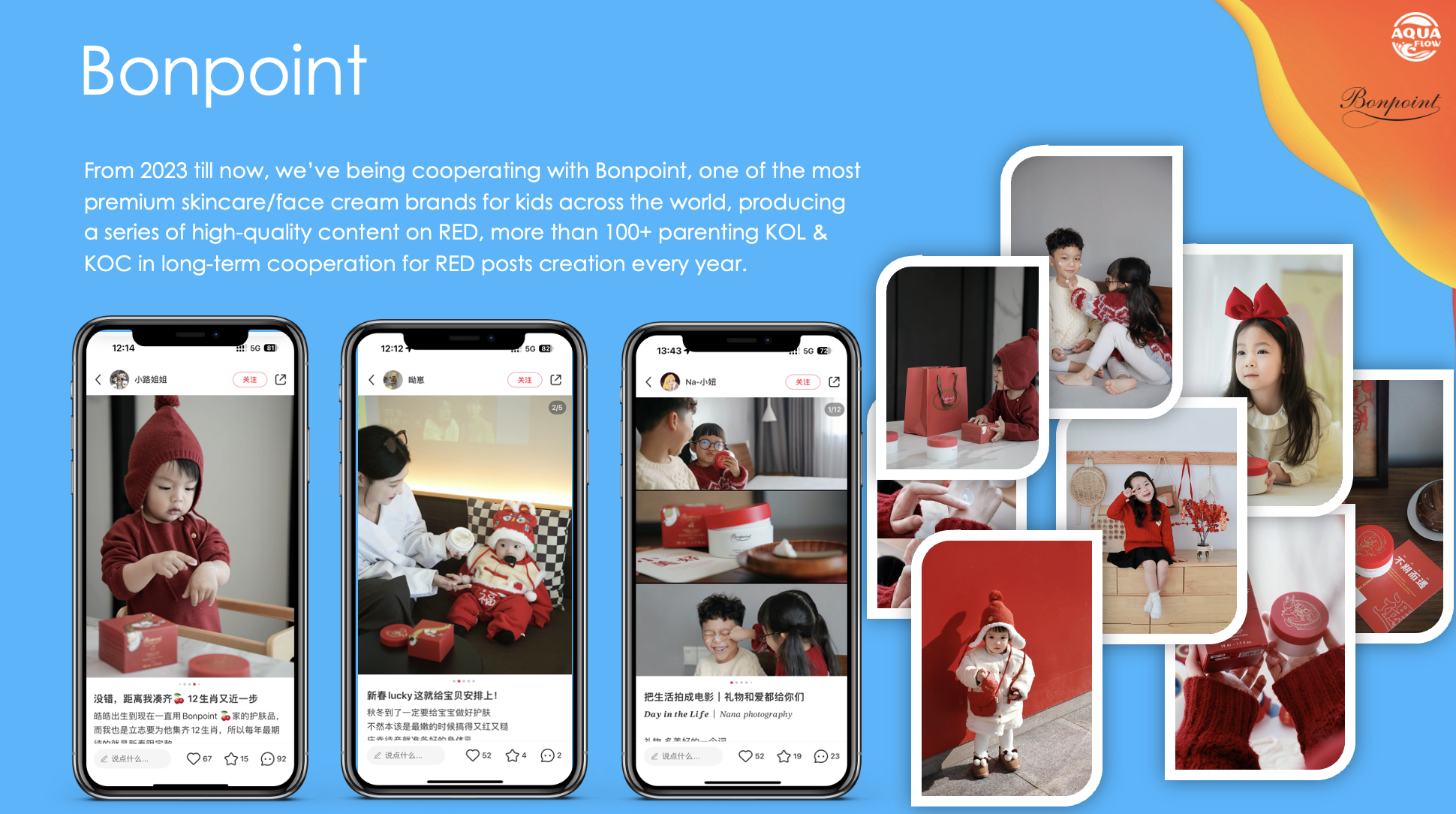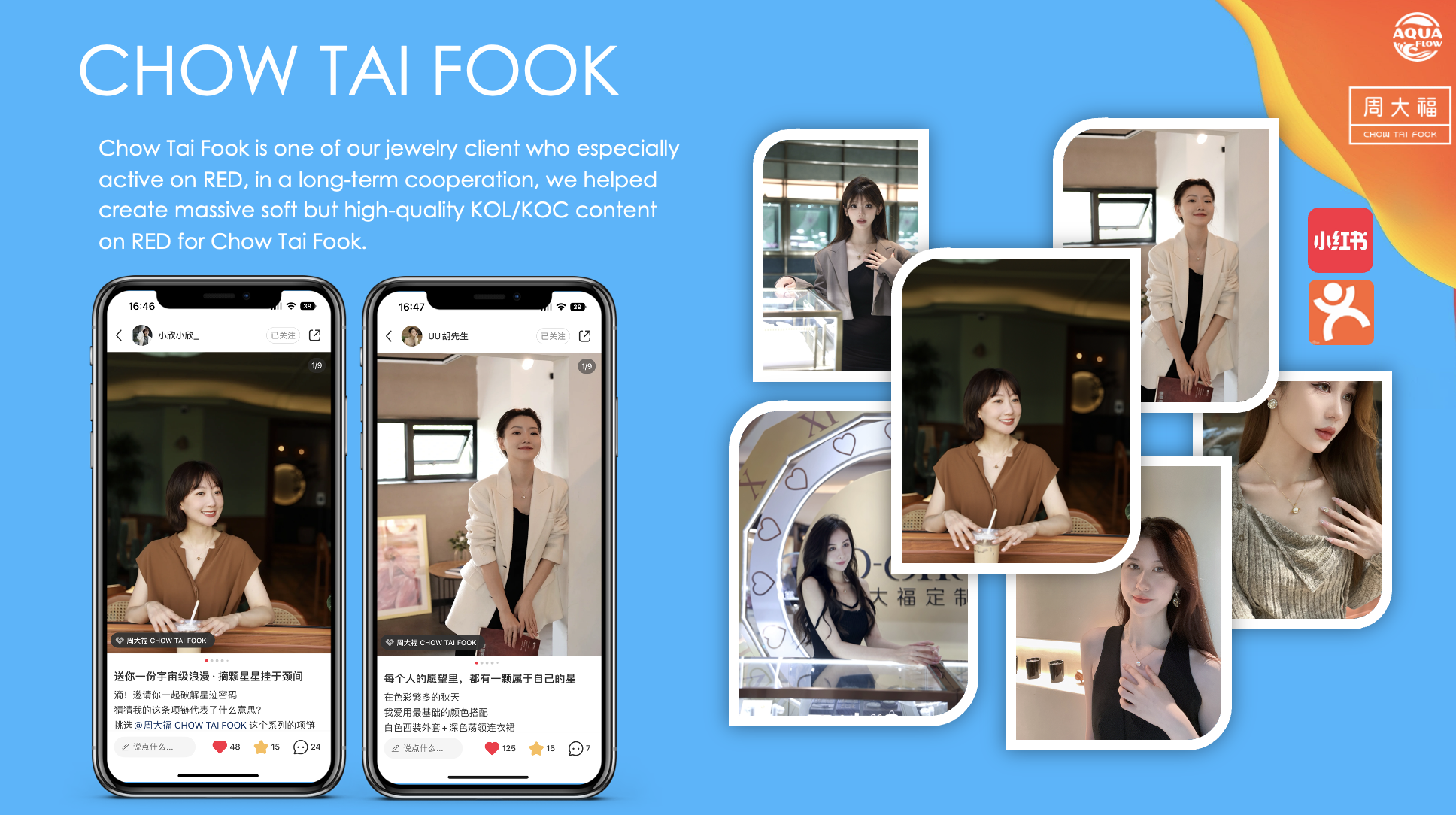 Currently, Aquaflow has collaborated with more than 10 brands on RED KOL cooperation promoting high-quality content related to their brands on RED. KOL cooperation is taking the first place of Aquaflow’s business sector in 2024, we possesses very rich experience and extensive KOL resources, providing top-tier services in the industry to help brands succeed on RED.
